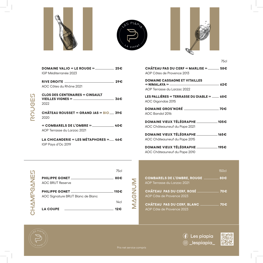 LES PIAPIA Menu